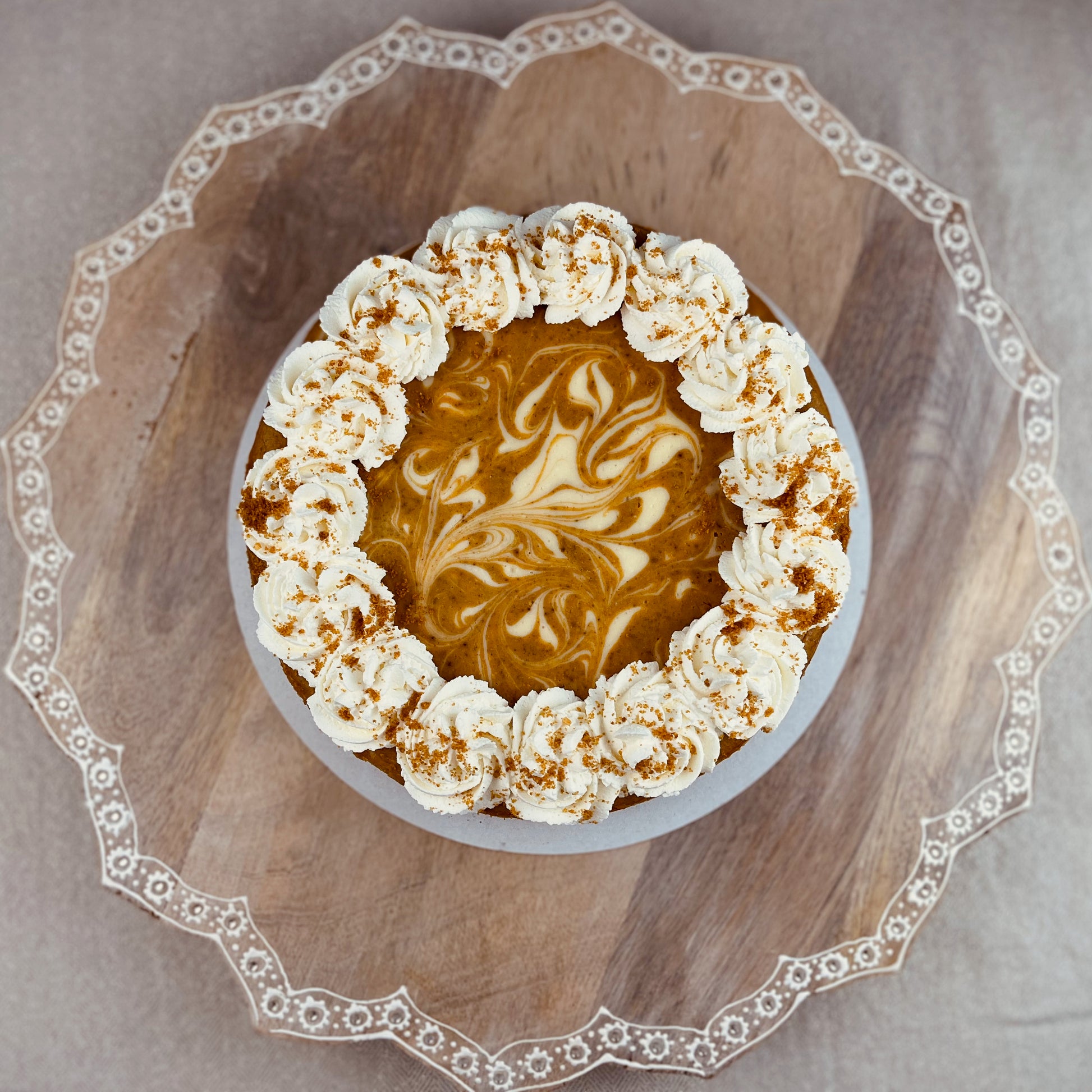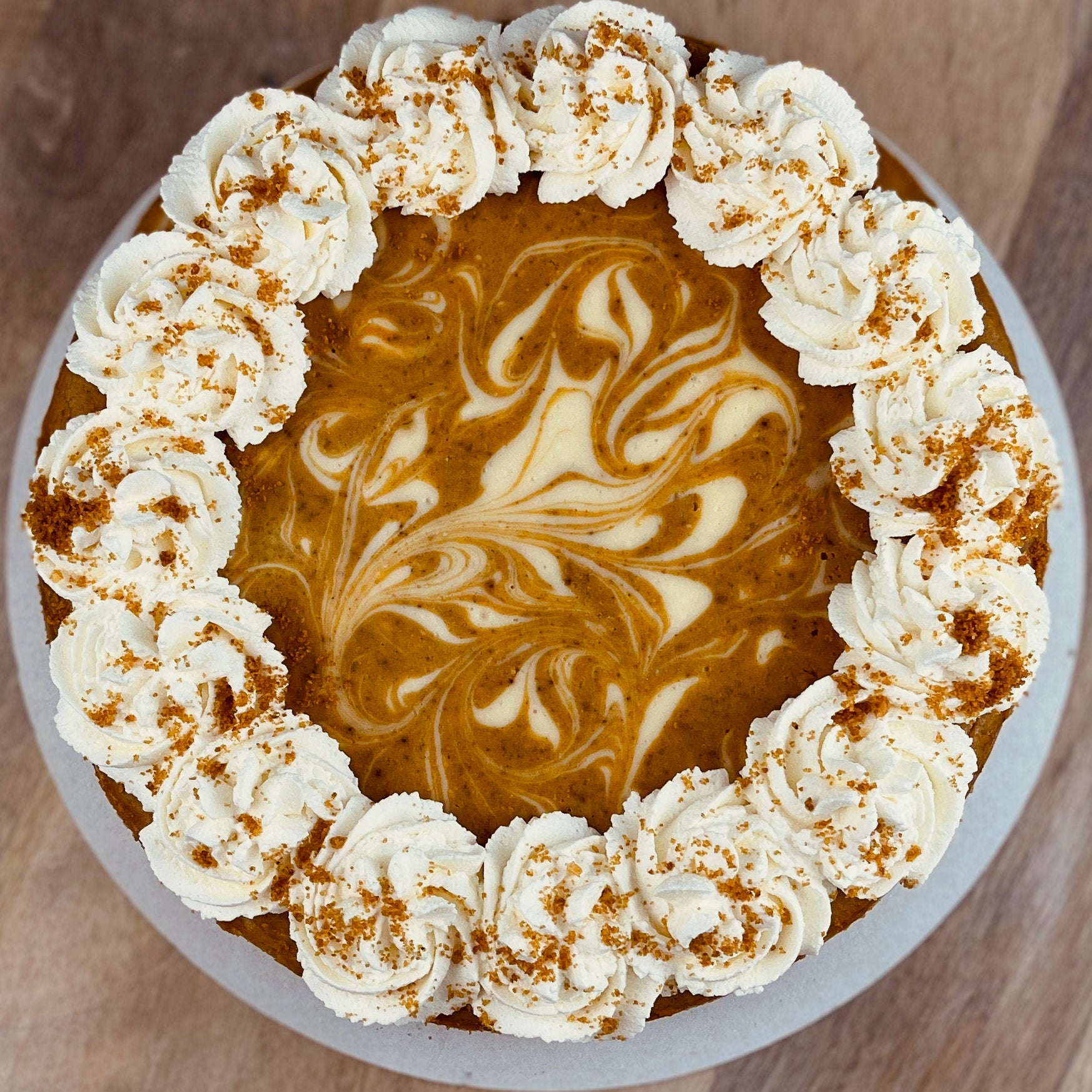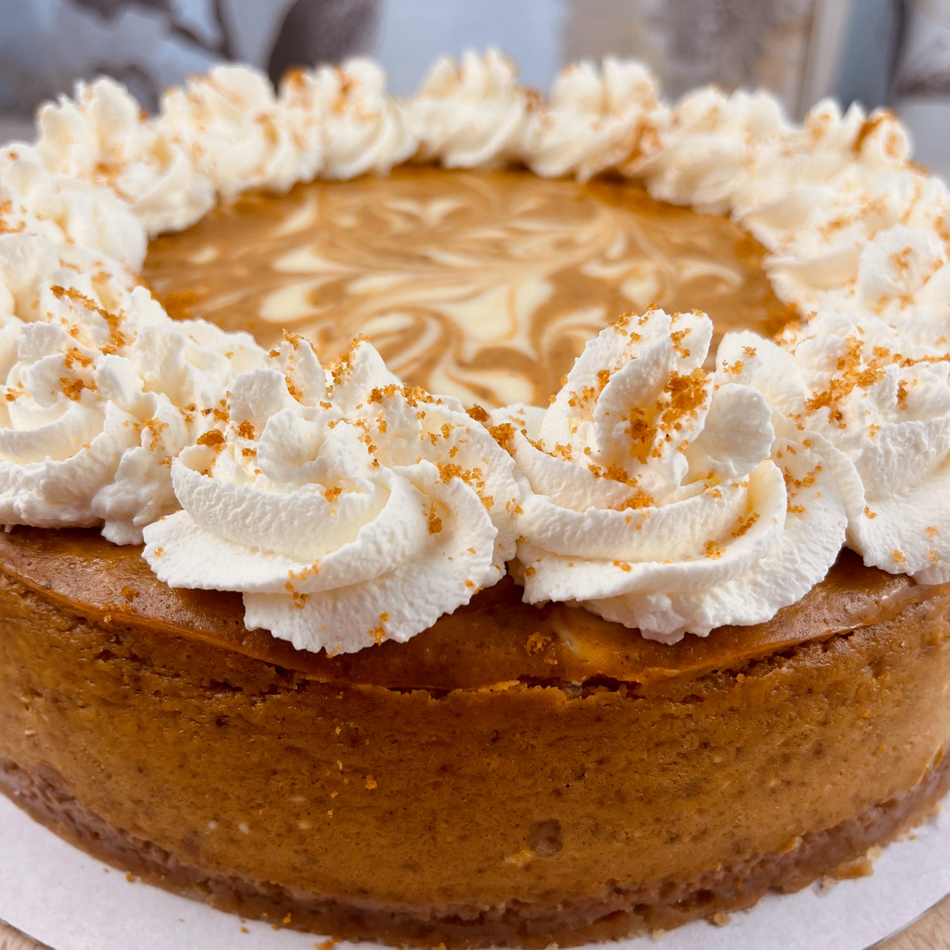 Pumpkin spice makes everything nice, and this cheesecake won’t disappoint! A perfectly balanced blend of pumpkin pie and creamy vanilla cheesecake, over a crunchy pumpkin spice crust, topped with fresh whipped cream and pumpkin spice cookie crumble. This cake is the perfect dessert for the fall season or a special holiday gathering.